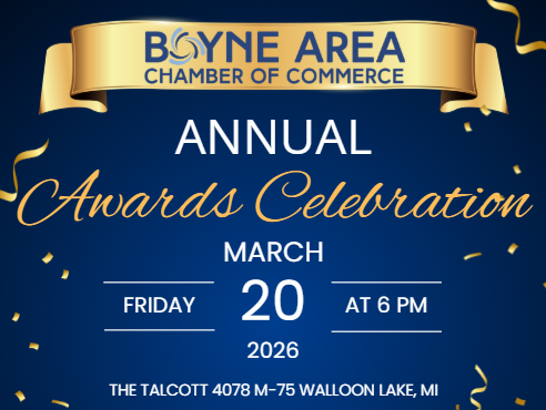 Name: 2026 Boyne Area Chamber of Commerce Annual Awards CelebrationDate: March 20, 2026Time: 6:00 PM - 10:00 PM EDTWebsite: http://www.boynechamber.comRegistration: Register Now